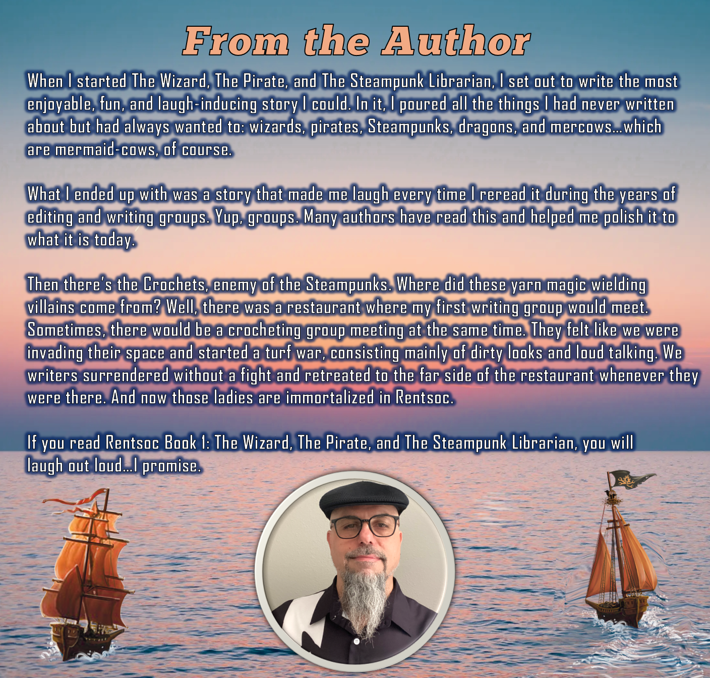 Scott Coon’s first foray into fantasy is an emphatic success. Rentsoc Book 1: The Wizard, The Pirate, and The Steampunk Librarian weaves a delightfully imaginative fantasy that blends absurdist humor, heart, and high-seas adventure in equal measures. The world-building is exceptional: continent-sized animals serving as nations, simmering feuds between the Steampunks and the Crochets, and multilingual dragons high on funny snuff smoke combine in a rich, whimsical setting. Beneath the gags, Coon’s writing is compassionate and thoughtful, subtly touching on questions of duty, power, and belief.