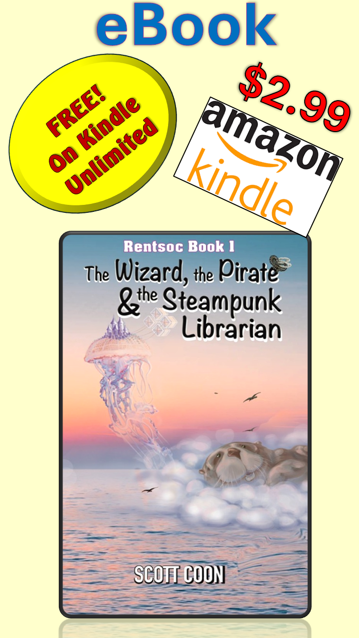 Scott Coon’s writing sparkles with charm and playful humor, effortlessly drawing readers into The Wizard, The Pirate, & The Steampunk Librarian—a world in which officials humiliate their subjects by scheduling meetings to include a compulsory hour-long wait.